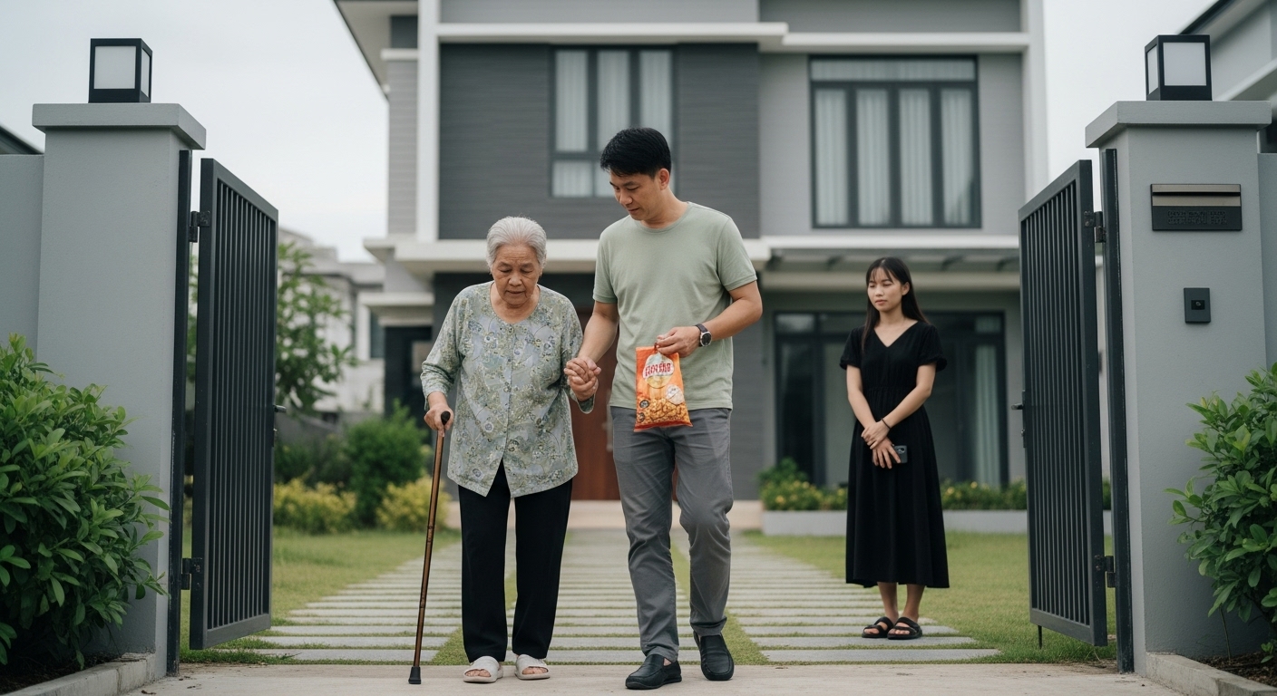 Mrs. Dolores bowed her head, hugged the bag of noodles to her chest, trying to hide her tears. The iron gate closed, leaving behind the old mother standing alone in the heavy rain.